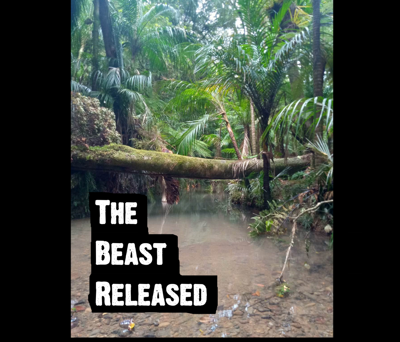 The green freak-child stays – not that it’s always close. And not that it’s a child. Flies hum and robins pull worms from the earth and trees creak and ferns nod and sunlight needles through the canopy from the east, for the first few hours, then directly above. Christopher wonders how soon the rain will come and whether he’ll drown.